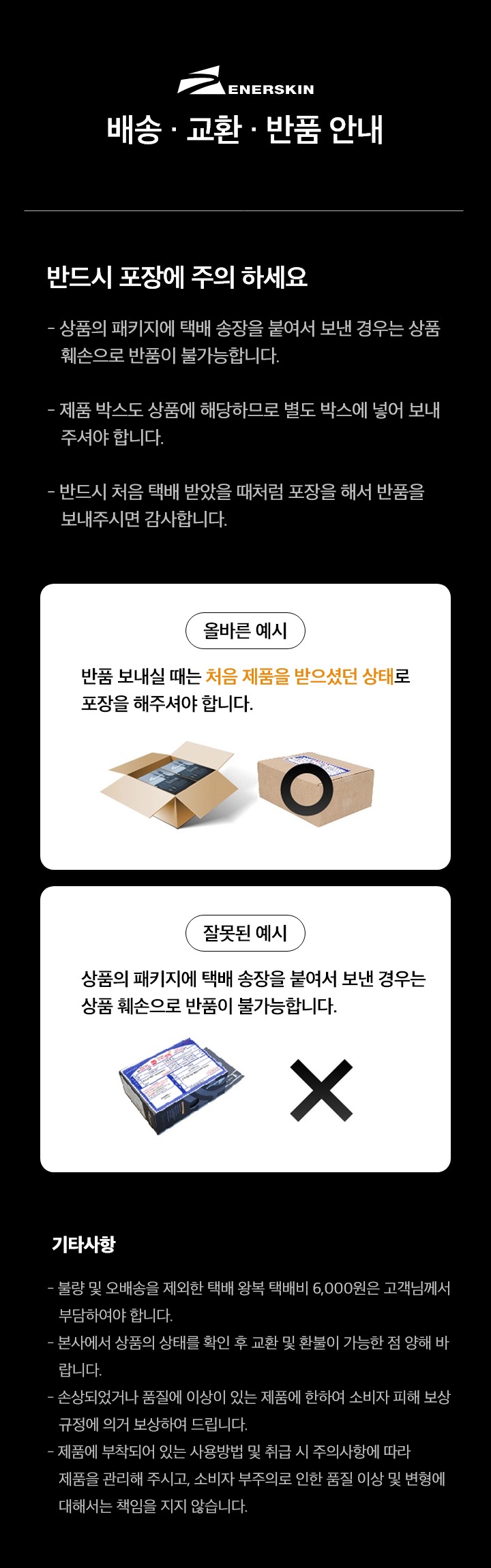 단, 제품에 부착되어 있는 사용방법 및 취급시 주의사항에 따라 제품을 관리해 주시고, 소비자 부주의로 인한 품질 이상 및 변형에 대해서는 책임을 지지 않습니다